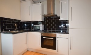 Second floor flat that consists of one double bedroom which is fully furnished with double bed and wardrobe, separate shower cubical with gas power shower, toilet, hand basin, towel radiator, large open plan kitchen and lounge area with large window which includes laminate wood flooring, electric hob and oven, integrated washer/dryer, fridge freezer, leather sofas and coffee table. This property also benefits from 32’ wall mounted LG plasma (with built in free view), full intercom system. EPC Rating C